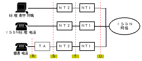 R參考點:位于非標準ISDN設(shè)備(TE2)和TA間;