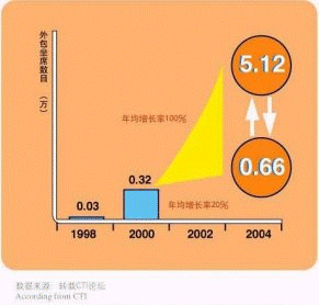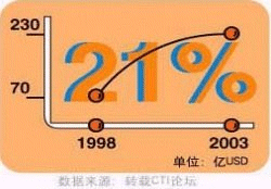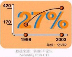 - 據(jù)CTI論壇轉(zhuǎn)引有關統(tǒng)計數(shù)字表明,全球呼叫中心外包市場1998年的產(chǎn)值為170億美元,2003年有望達到420億美元,并正以每年遞增27%的速度快增長;
