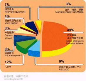 - 中國CRM市場正在快速增長,從事與呼叫中心有關產(chǎn)品、服務和運營方面的廠商數(shù)量約為620多家。其中,系統(tǒng)集成及應用軟件開發(fā)商的數(shù)量占有49%的比例,是呼叫中心從業(yè)廠商中最為主要的組成部分。