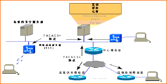 (TACAS:Terminal Access Controller Access Control System--終端訪問控制系統(tǒng))有了這樣的服務(wù)器以后,連接在這個(gè)網(wǎng)絡(luò)的所有用戶,不管它需要以什么樣的方式訪問網(wǎng)絡(luò)設(shè)備,都必須通過服務(wù)器的安全性監(jiān)測。由于服務(wù)器上可以運(yùn)行功能很強(qiáng)的安全性方面的軟件,可以完全滿足BOSS系統(tǒng)的安全需求。在路由器、撥號訪問服務(wù)器和安全服務(wù)器之間傳送的可以是經(jīng)過加密的有關(guān)網(wǎng)絡(luò)安全協(xié)議的數(shù)據(jù)流。