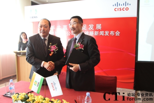 CTI論壇(ctiforum)1月12日消息(記者 張塵):2010年1月11日,北京——“攜手共贏 共促發(fā)展——天獅集團(tuán)與思科公司戰(zhàn)略項(xiàng)目新聞發(fā)布會(huì)”在北京召開(kāi),雙方共同宣布,天獅集團(tuán)國(guó)際健康產(chǎn)業(yè)園網(wǎng)絡(luò)平臺(tái)成功啟用,并正式達(dá)成合作戰(zhàn)略。天獅集團(tuán)董事長(zhǎng)兼總裁李金元先生與思科全球副總裁、思科中國(guó)副董事長(zhǎng)兼總裁林正剛先生出席新聞發(fā)布會(huì),并進(jìn)行簽約儀式。通過(guò)本次強(qiáng)強(qiáng)聯(lián)合,思科面向服務(wù)的網(wǎng)絡(luò)架構(gòu)(SONA)全面部署于天獅集團(tuán)國(guó)際健康產(chǎn)業(yè)園,為天獅集團(tuán)業(yè)務(wù)的穩(wěn)定持續(xù)發(fā)展以及信息化水平的進(jìn)一步提升提供了可靠保證,同時(shí)也為雙方未來(lái)更深層次的合作打下了堅(jiān)實(shí)的基礎(chǔ)。