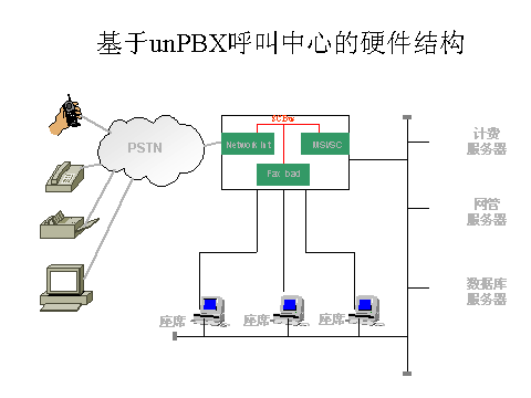 所謂unPBX就是利用CTI構(gòu)件來完成電話系統(tǒng)的功能。這樣的電話系統(tǒng)具有傳統(tǒng)的PBX的所有功能。目前,這種交換系統(tǒng)逐漸在市場(chǎng)上流行開來。它較傳統(tǒng)和PBX有一些優(yōu)越性。
