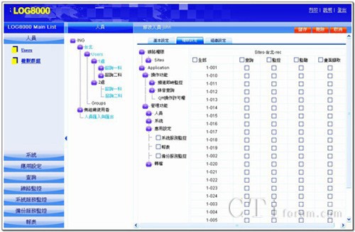 權(quán)限管理設(shè)計(jì),采樹(shù)枝狀展開(kāi)圖之設(shè)計(jì)模式,讓系統(tǒng)管理者可以輕易地掌握目前建立組織(各個(gè)據(jù)點(diǎn))、人員(為值機(jī)員、督導(dǎo)、評(píng)分員或管理者)與不同群組之狀態(tài),設(shè)定多層級(jí)的權(quán)限密碼,增加維護(hù)便利性。