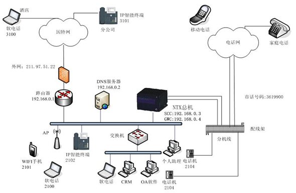 NTX IP融合通信電話總機網(wǎng)絡架構