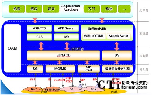 流程解析引擎支持VXML及SUNTEK Script流程語言,通過SCE集成開發(fā)環(huán)境,可以方便地定制開發(fā)動態(tài)語音流程。除實現(xiàn)IVR功能外,還可以通過數(shù)據(jù)鏈路同步向用戶的終端推送數(shù)據(jù),并通過終端軟件的解析后展現(xiàn)在客戶面前。