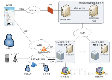 所謂“交互式電話會議”是指由分布在不同地方的與會者,通過固定電話或移動(dòng)電話或數(shù)字電話終端等通信終端,采用約定的方式(呼入方式或呼出方式)進(jìn)入電話會議狀態(tài),主持人和與會者彼此能自由交談,自由發(fā)言的業(yè)務(wù)。新太交互式電話會議服務(wù)系統(tǒng)對“交互”二字的體現(xiàn)主要表現(xiàn)在語音的交互及控制的交互兩方面。語音的交互是指會議主持人以及與會者不僅可以聽到會議現(xiàn)場別人的發(fā)言,還可以自由地發(fā)表自己的見解;控制的交互性是指會議主持人具有對整個(gè)會議的控制權(quán),有權(quán)加入新與會者或強(qiáng)行拆除某與會者,有權(quán)決定是否對會場錄音等。此外,在交互式電話會議的定義上本系統(tǒng)還延伸出多種會議模式,如允許申請發(fā)言的廣播式會議、點(diǎn)名發(fā)言的廣播式電話會議、分組討論會議等。