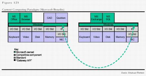 今天,由于業(yè)內(nèi)各企業(yè)普遍明白了控制價值鏈中操作平臺和應用平臺的重要性,因此靠壟斷本身來贏利容易受到全行業(yè)的抵制,微軟的策略是在操作平臺和應用平臺上形成壟斷后,靠應用來贏利,這樣大大增加了贏利的隱蔽性,業(yè)界比較容易接受!