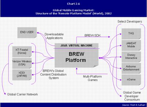 當然,企業(yè)對未來的把握也往往和自己對這個行業(yè)的熟悉程度分不開的,所以微軟今天的策略大都帶有強烈的IT和互聯(lián)網(wǎng)的味道。而移動市場當中的新貴高通公司,就想當年的微軟一樣,偶然性地掌握了CDMA的核心技術,同時由于移動通信在全球的興起,成了移動通信價值鏈中的重要環(huán)節(jié)之一。但是,由于所有的競爭廠家都希望自己擁有核心技術,技術上略落后,但更開放的GSM得到了更多市場的青睞。為了保持自己的地位,高通采取了與微軟相似的地位,拋出了名為BREW的移動應用平臺。與微軟在寬帶和廣電的策略相同,高通在移動通信領域提供從技術、服務到外包運營等全套解決方案。在移動游戲領域,高通為美國第一大無線運營商Verizon搭建了基于BREW的游戲業(yè)務平臺,同時負責這一平臺的運圍和與游戲提供商的合作及管理、促銷等工作。與Verizon的合作是獨家的,建立在利潤分成的基礎上,到現(xiàn)在為止,這種模式是移動游戲領域最成功的合作之一。可以說,高通把自己變成了半個運營商,同時由于擁有客戶資源和合作模式提供,高通的地位有望超過Verizon。