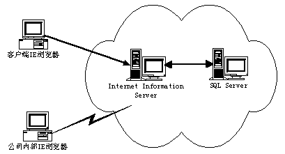 ebanswers分銷(xiāo)系統(tǒng)的物理結(jié)構(gòu)是非常明了的。它只需要兩個(gè)Windows 2000 Server、一個(gè)SQL Server和一個(gè)Internet Information Server。對(duì)于數(shù)據(jù)量并不是非常大的系統(tǒng),一個(gè)安裝有Windows 2000 Server、SQL Server和 Internet Information Server的系統(tǒng)也能滿足要求。(參看圖1)