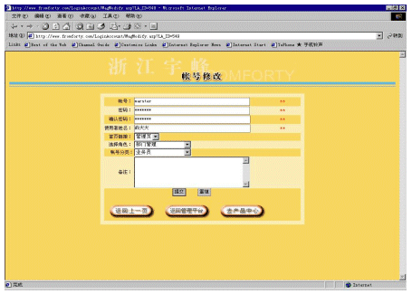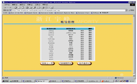 帳號(hào)系統(tǒng)主要是為適應(yīng)一個(gè)分銷(xiāo)商內(nèi)部會(huì)有多個(gè)不同等級(jí)的人使用這個(gè)系統(tǒng)。對(duì)于分銷(xiāo)商而言,它可以建立多個(gè)帳號(hào),并為每個(gè)帳號(hào)分配不同的權(quán)限,以及每個(gè)帳號(hào)可以對(duì)應(yīng)管理不同下屬企業(yè)(參看圖5和圖6)。還可以為不同的帳號(hào)提供不同的進(jìn)入頁(yè)面,使得用戶使用更加方便。