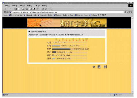 宇峰公司(www.fromforty.com)是柯達(dá)(中國(guó))有限公司在中國(guó)華東地區(qū)的總代理,負(fù)責(zé)管理華東地區(qū)近600個(gè)分銷(xiāo)商和連鎖店。公司非常重視信息化建設(shè),添設(shè)了大量的計(jì)算機(jī),建立起初步的管理系統(tǒng)。但是直到2000年還是依靠E-mail傳遞大量的Excel表格獲取需要的產(chǎn)品銷(xiāo)售和庫(kù)存的信息。這些表格對(duì)各級(jí)分銷(xiāo)商查詢和統(tǒng)計(jì)數(shù)據(jù)來(lái)說(shuō)非常麻煩,因?yàn)槊恐芤幚韼装賯(gè)訂購(gòu)單。整個(gè)處理過(guò)程非常緩慢,并且成本很高,也容易造成各種的數(shù)據(jù)錯(cuò)誤。而公司內(nèi)部對(duì)業(yè)務(wù)人員銷(xiāo)售情況的統(tǒng)計(jì),也頗為麻煩,因?yàn)橄录?jí)分銷(xiāo)商上報(bào)上來(lái)的數(shù)據(jù)準(zhǔn)確性差,并且不夠及時(shí)。處理這些表格對(duì)宇峰公司和分銷(xiāo)商以及連鎖店而言都是效率很低的,并且常常令人茫然不知所措。