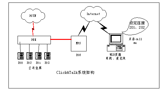 舉個例子,在傳統(tǒng)的網(wǎng)上交流手段下,對于一個在線商戶來說,其客戶如果需要與而且也容易造成客戶流失,F(xiàn)在采用Click&Talk系統(tǒng)后,一個在線的商戶只要將一個Click & Talk的按鈕嵌在在線商店里。世界各地的用戶只需要通過PC,點擊在線商戶的這個按鈕,就能與商戶電話聯(lián)系,或請求在方便的時間給予回撥。通過這種通信模式,世界各地的客戶都能和您保持密切互動的聯(lián)系,而不用擔心長途電話的費用。還可以實現(xiàn)公司出差人員及分支機借助Click&Talk平臺和公司總部的通話的應用,大幅節(jié)省話費成本。