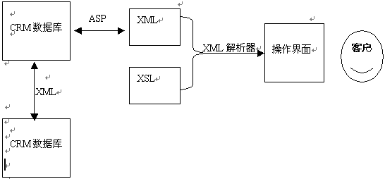 包括客戶資料,銷售報(bào)表等相關(guān)的客服信息都存儲在數(shù)據(jù)庫中,通過ASP應(yīng)用程序取出需要的數(shù)據(jù)生成符合條件的XML文檔,再通過安裝在服務(wù)器端的XML解析器按照預(yù)先設(shè)定的排版樣式XSL解析XML文檔,最后生成符合條件的HTML格式的CRM操作界面呈現(xiàn)在客戶面前。客戶數(shù)據(jù)可能來自不同的數(shù)據(jù)庫,并且都有各自不同的復(fù)雜格式。但客戶與這些數(shù)據(jù)庫間只通過一種標(biāo)準(zhǔn)語言進(jìn)行交互,那就是XML。由于XML的自定義性及可擴(kuò)展性,它足以表達(dá)各種類型的數(shù)據(jù)?蛻羰盏綌(shù)據(jù)后可以進(jìn)行處理,也可以在不同數(shù)據(jù)庫間進(jìn)行傳遞。