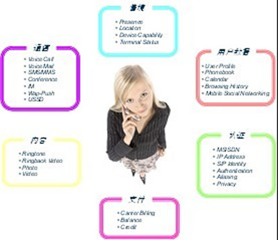 三是開放電信能力,運營商手里有很多得天獨厚的資源,如SMS、MMS、語音等可靠的通信服務,用戶數據,情境,認證等。這些是運營商獨有的資源,在此基礎上開發(fā)出來的應用也是獨一無二的。