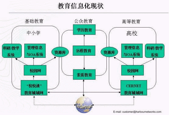 目前國(guó)內(nèi)教育界主要分為高等教育、公眾教育、基礎(chǔ)教育三大塊,三個(gè)部分的建設(shè)應(yīng)用情況不盡相同。同方網(wǎng)絡(luò)對(duì)于每一個(gè)部分都提出了有針對(duì)性的解決方案,為加速教育界信息化助一臂之力。
