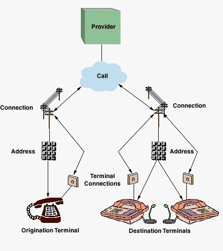 程序員在掌握利用JTAPI編寫CTI程序之前,首先得搞清JTAPI最基本的電話模型,這個(gè)模型是搭建CTI程序的基礎(chǔ),它可以以樹狀結(jié)構(gòu)表現(xiàn)出來(如下圖)。
