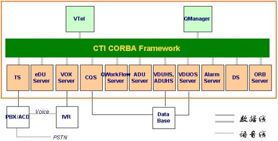 市場(chǎng)上有很多CTI產(chǎn)品,如AVAYA的CVCT、Dialogic(已被Intel收購(gòu))等。這些CTI僅相當(dāng)于圖3中的“TS”(電話服務(wù)器),由此可見(jiàn)QCTI具有明顯的比較優(yōu)勢(shì):
