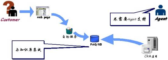 自助服務(wù):實(shí)際上,客戶咨詢的很多問(wèn)題都屬于FAQ。對(duì)于這類問(wèn)題,Quintus WebCenter提供“自助服務(wù)”,用戶無(wú)須客服代表的幫助,即可快速獲得答案,這一方面可減少企業(yè)客服代表的數(shù)量,另一方面提高了用戶咨詢的響應(yīng)速度。此外,CRM的管理人員可通過(guò)FAQ管理加入新的FAQ,或去掉過(guò)時(shí)的FAQ。