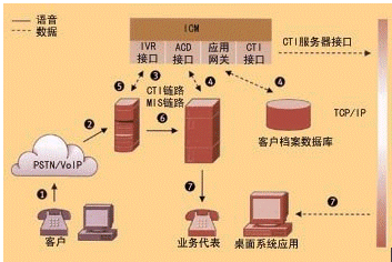 CTI (Computer Telephony Integration 計(jì)算機(jī)電信集成) 技術(shù)將計(jì)算機(jī)網(wǎng)和電話網(wǎng)連接在一起,把語(yǔ)音和數(shù)據(jù)服務(wù)集成為一體,使得構(gòu)造數(shù)據(jù)和語(yǔ)音的融合應(yīng)用得以實(shí)現(xiàn)。例如,由于CTI技術(shù)的引入,當(dāng)用戶來(lái)話時(shí),呼叫中心能根據(jù)用戶的呼叫信息如ANI(主叫號(hào))結(jié)合數(shù)據(jù)庫(kù)迅速地識(shí)別用戶,實(shí)現(xiàn)“彈屏”功能;當(dāng)電話轉(zhuǎn)接時(shí),實(shí)現(xiàn)語(yǔ)音數(shù)據(jù)的同步轉(zhuǎn)移;根據(jù)所獲得的客戶信息及其他相關(guān)信息將來(lái)話路由到最適合服務(wù)的座席等。CTI技術(shù)包含了數(shù)據(jù)通信與語(yǔ)音通信兩大部分的內(nèi)容,關(guān)注的不僅僅是將基于計(jì)算機(jī)的智能技術(shù)運(yùn)用到電話的發(fā)送、接收及管理,還要考慮各種媒體類(lèi)型的信息傳送,包括實(shí)時(shí)信號(hào)和非實(shí)時(shí)信號(hào),如傳真、電子郵件和視頻信號(hào)等。