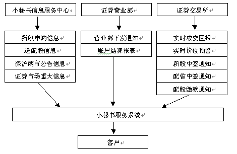 潤能公司小秘書服務(wù)中心每日處理各種公告信息,重大財(cái)經(jīng)信息等,并主動(dòng)發(fā)送到位于券商營業(yè)部的小秘書智能化系統(tǒng)中,由系統(tǒng)對(duì)信息進(jìn)行個(gè)性化處理后發(fā)送給客戶。