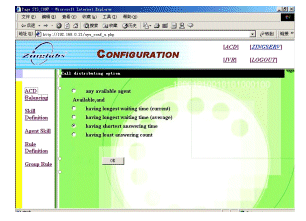 ZINGSERV具有基于WEB的配置界面,系統(tǒng)管理員注冊(cè)后,可方便完成座席分配,技能組分配等功能: