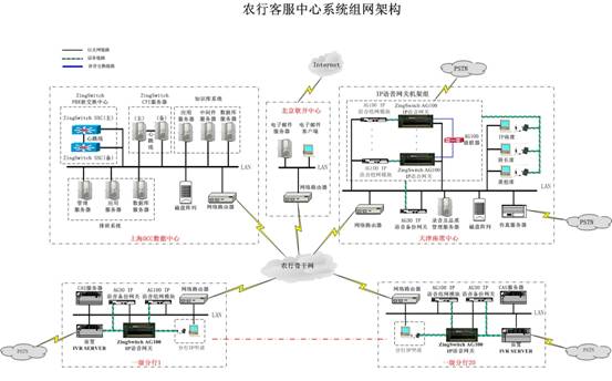 中國農業(yè)銀行一體化客戶服務中心,包括“一個系統(tǒng)、兩個中心、36個分行節(jié)點”。一個系統(tǒng)是指全行的客戶服務中心基于同一套應用系統(tǒng);兩個中心是指南、北兩個集中的人工座席服務中心;36個分行節(jié)點是指各分行的語音接入、自助服務應用系統(tǒng)以及遠端座席。
