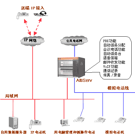 - 電話系統(tǒng)與傳統(tǒng)的交換機連為一個統(tǒng)一的通訊整體