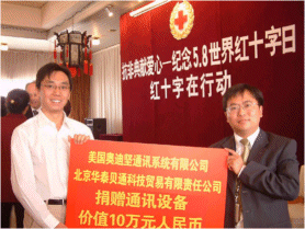 4月,SARS在北京肆無(wú)忌彈的橫行,其它國(guó)家和地區(qū)也都不同程度地受到SARS的侵害,給人民的生活和工作帶來(lái)了極大的影響,人們的身體健康和生命安全受到了威脅。中國(guó)紅十字會(huì)廣大工作人員對(duì)此次疫情迅速響應(yīng),為了支持中國(guó)中國(guó)紅十字會(huì)總開展SARS疫情的救助和捐贈(zèng)工作,幫助其通過(guò)現(xiàn)代化的通訊手段快速準(zhǔn)確的進(jìn)行話務(wù)處理,以便更好地保護(hù)人民的生命和健康,4月30日,奧迪堅(jiān)通訊系統(tǒng)(上海)有限公司聯(lián)合北京華泰貝通科技貿(mào)易有限責(zé)任公司向中國(guó)紅十字會(huì)總會(huì)捐贈(zèng)了價(jià)值約10萬(wàn)余人民幣的呼叫中心系統(tǒng),軟件以及相關(guān)服務(wù),以實(shí)際行動(dòng)幫助中國(guó)紅十字會(huì)總會(huì)抗擊SARS。