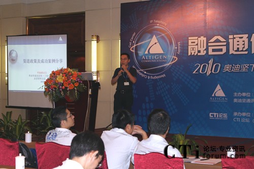 CTI論壇(ctiforum)9月10日消息(記者 楊毅):2010年9月9日奧迪堅在廣州市嘉鴻華美達廣場酒店舉辦的“下一代融合通信平臺華南研討會” 圓滿落下帷幕。本次會議以 “融合通信” 為主題,將最新的由“IPT、IPCC、UC和Mobility”四個部分組成的融合通信技術(shù)完美呈現(xiàn)在嘉賓眼前,吸引了業(yè)界眾多知名廠商和媒體,并得到了奧迪堅在各個行業(yè)的新老客戶的積極響應(yīng)和參與。通過奧迪堅的精彩主題演講、現(xiàn)場的情景秀表演和眾多案例分享等多種形式,與合作伙伴及嘉賓共同探討融合通信技術(shù)該如何發(fā)展、解讀渠道新政策、同時更加深入了解奧迪堅產(chǎn)品,提高合作伙伴在市場上的競爭力。CTI論壇(www.eurorequirement.com)獨家承辦此次會議,并進行全程報道。