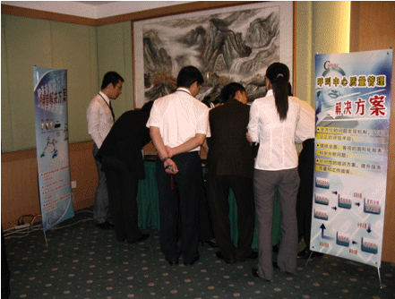 廣州站活動原定于5月18日舉行,但由于臺風(fēng)“珍珠”的影響延期。5月29日下午,“2006友鄰?fù)ㄓ嵑艚兄行漠a(chǎn)品巡展”廣州站會議在五星級酒店——廣東國際大酒店舉行。雖然當(dāng)天陰雨連綿,但來自廣州、深圳、中山、佛山等城市的銀行、保險(xiǎn)、政府、航空、企業(yè)等行業(yè)的呼叫中心運(yùn)營管理專家和領(lǐng)導(dǎo)還是冒雨準(zhǔn)時出席了此次活動。