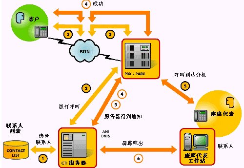 增強撥號是最常用的步進模式,它僅在適當的就緒狀態(tài)——服務代表可利用時,發(fā)出呼叫。該模式保證,在呼叫客戶時呼叫總是到達一位服務代表,并且系統(tǒng)自動設置呼叫。該步進模式的弊端是降低了服務代表的表現,因為在撥號、振鈴和不成功提示音提示——這些過程中耗費了大量時間。