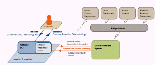 在線銀行對該解決方案的簡明性和短的集成實(shí)施時間非常地滿意。銀行的IT經(jīng)理對這一新技術(shù)允許工程師在不到一個月的時間里實(shí)施一個相當(dāng)復(fù)雜的集成的方法印象深刻。利用Altitude集成服務(wù)器的優(yōu)勢,匯集了所有聯(lián)絡(luò)中心的功能在一個API中。