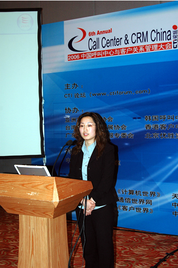 2006年4月3日至5日,2006中國(guó)呼叫中心與客戶關(guān)系管理大會(huì)在北京國(guó)際會(huì)議中心隆重召開,以下是億迅(中國(guó))最佳商業(yè)模式咨詢顧問經(jīng)理孫莉?qū)n}演講實(shí)錄: