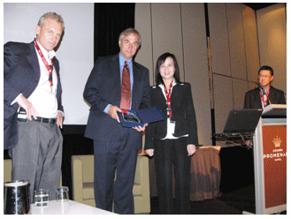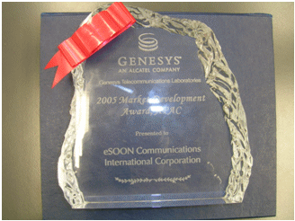 在2006年8月結(jié)束的澳洲墨爾本G-Force會議上,Genesys將 “2005年亞太地區(qū)最佳市場拓展”(2005 Market Development Award,APAC)獎(jiǎng)項(xiàng)授予億迅,億迅總裁李冰影女士出席頒獎(jiǎng)儀式并代表公司領(lǐng)取該獎(jiǎng)。