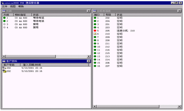 1) 交換機(jī)通信服務(wù)器:顯示您的外線/分機(jī)/客戶端的接線情況