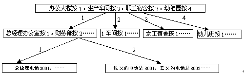 舉例 如某單位分機(jī)號碼結(jié)構(gòu)如下所示,該單位的查號臺序號可分三級: