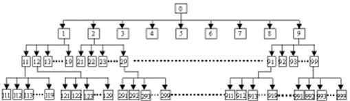 查號臺提示音可分4級,第1級序號為0,這一級固定為0;第2級序號為1、2、3~9;第3級序號為11、12~19、21、22~29……91、92、93~99,共81個(gè);第4級序號為111、112、~119、121、122、~129、131、……999共729個(gè)。如下圖所示。