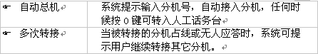 1). 當(dāng)您撥打總機(jī)號碼進(jìn)入電腦話務(wù)員時(shí)就聽到系統(tǒng)提示音"您好!XXX公司,請直撥分機(jī)號,查號請撥0"。這句系統(tǒng)提示音可通過管理員訪問由管理員根據(jù)需要自行錄制。參見管理員訪問中的介紹。