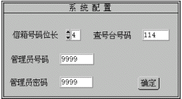 管理員號碼:管理員在系統(tǒng)維護(hù)時(shí)需拔打的信箱號碼(密碼缺省為9999)。