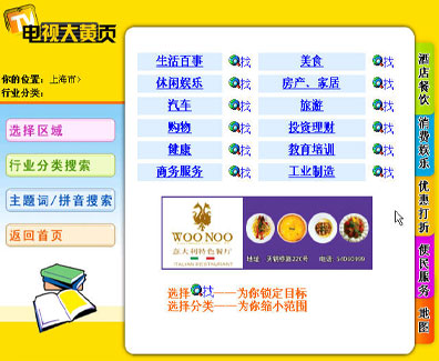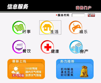 在上海IPTV提供的業(yè)務中,信息服務也是眾多用戶喜聞樂見的一項業(yè)務,內(nèi)容覆蓋廣泛。它提供了時事、生活、娛樂、餐飲、健康、房產(chǎn)等信息,其中“時事”一欄呈現(xiàn)了新浪上海熱線實時傳遞的全球最新新聞資訊,讓老百姓“手握遙控器,便知天下事”,“健康”一欄更是一網(wǎng)打盡上海地區(qū)醫(yī)療機構(gòu)的信息資訊,特色?扑阉鳛橛脩籼峁┍憬莸尼t(yī)療信息服務,“房產(chǎn)”中上海地區(qū)各類二手房產(chǎn)訊息一應俱全,價格、地段、房型等應有盡有。