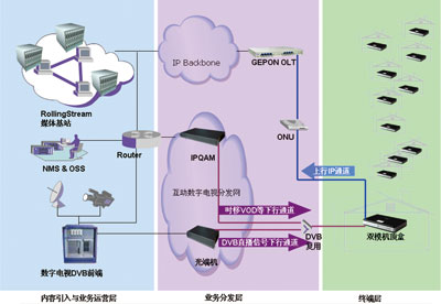 圖1 奔流RollingStream廣電互動數(shù)字電視解決方案系統(tǒng)架構(gòu)
