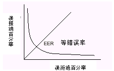 這些錯誤和兩種不同的用戶群有關(guān)。特別是,比如,0.2%的誤接納率,并不意味著0.2%的呼叫者能闖入系統(tǒng),而是0.2%的冒名頂替者企圖闖入。這比例往往只是呼叫者總數(shù)的一個零頭。安全性和方便性須得到折衷平衡。當誤接納率接近零時,誤拒絕率則上升,反之亦然。曲線上誤接受和誤拒絕率相等的點叫等錯率(ERR)。