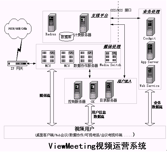 發(fā)展寬帶視頻業(yè)務(wù),提供寬帶視頻通信解決方案是優(yōu)視風(fēng)的宗旨,利用ViewMeeting平臺(tái)(如圖1所示),運(yùn)營企業(yè)可以制定針對不同用戶需求的不同視頻業(yè)務(wù),使視頻業(yè)務(wù)能夠普及到更廣的用戶范圍中。