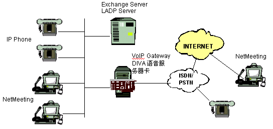 上。當(dāng)用戶點擊這一按扭時,VoIP的應(yīng)用程序,比如NetMeeting,將自動地在他們的計算機中啟動。這個應(yīng)用程序?qū)⒋蜷_同DIVA VoIP 網(wǎng)關(guān)服務(wù)器的連接,然后再由網(wǎng)關(guān)連接到