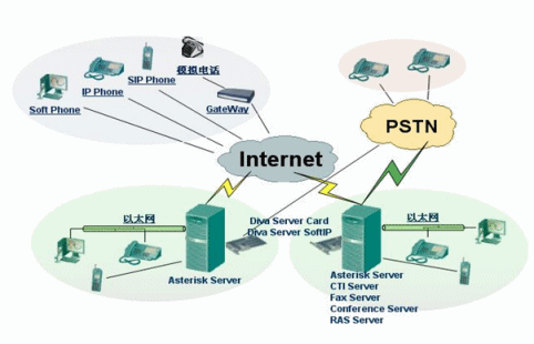 Eicon Diva Server卡和Asterisk運(yùn)行在Linux平臺,以使用TCP/IP通路,建立于 IP 網(wǎng)路上,讓企業(yè)可以應(yīng)用數(shù)據(jù)網(wǎng)路來傳送語音,不僅可以大幅降低通訊成本,而且部署及管理維護(hù)系統(tǒng)上也可以更加容易。而IP