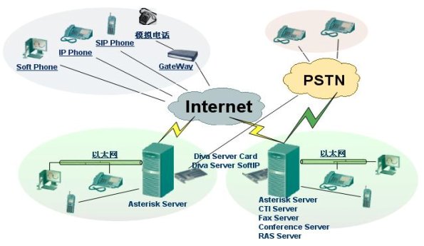 - 使用Asterisk與Eicon Diva Server卡相配合形成的IP-PBX系統(tǒng)大大區(qū)別于傳統(tǒng)基于PSTN的PBX和簡單的IP