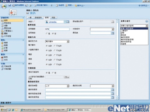 Dynamics CRM 4.0的聯(lián)絡人,除了基本信息之外,還可以針對偏好的聯(lián)絡方式、活動記錄、次要聯(lián)絡人或者商機管理等,儲存更詳細的記錄。