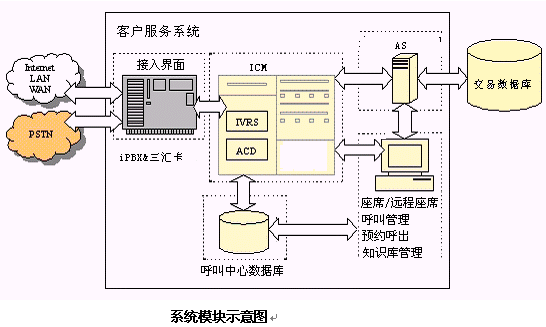 杭州恒生公司的企業(yè)級證券客戶服務(wù)中心,是一個(gè)集語音技術(shù)、通信技術(shù)、計(jì)算機(jī)網(wǎng)絡(luò)、數(shù)據(jù)庫技術(shù)于一體,支持電話、傳真、電子郵件、Web等多種媒體接入方式的呼叫響應(yīng)中心。它采用先進(jìn)的VOIP技術(shù),是一個(gè)基于分布式對象,與業(yè)務(wù)無關(guān)的客戶服務(wù)中心通用平臺。充分考慮現(xiàn)代證券客戶服務(wù)中心所應(yīng)具備的特點(diǎn),以及現(xiàn)代券商的運(yùn)作模式。是杭州恒生公司多年的基于板卡式客戶服務(wù)中心的工作經(jīng)驗(yàn)積累基礎(chǔ)上,采用先進(jìn)的接入設(shè)備,而推出的新一代客戶服務(wù)中心。