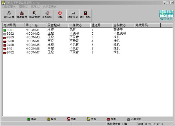 系統(tǒng)管理員根據(jù)權(quán)限可以對(duì)系統(tǒng)的任一路電話(huà)進(jìn)行監(jiān)聽(tīng),此時(shí)被監(jiān)聽(tīng)的說(shuō)話(huà)雙方絲毫不會(huì)有所察覺(jué),