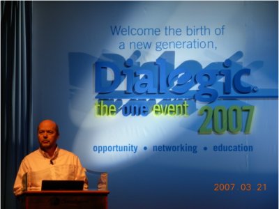 大會首先由Dialogic公司的全球資深副總裁 James Besley致辭。“我們回來了!”,James一句意味深長的開場白引來了全場長時間的熱烈鼓掌。是的,曾幾何時,Dialogic在全球CTI領域是何等的輝煌,上個世紀九十年代他們取得過驕人的業(yè)績,占據了全球市場的絕大部分份額,稱之為當時CTI行業(yè)的先驅和領導者實不為過。